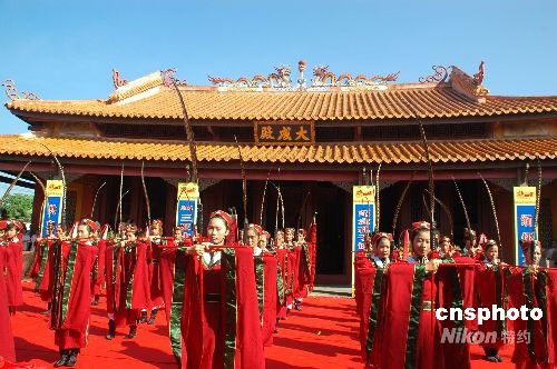 9月28日,海南省目前唯一的中国历史文化名镇三亚市崖城镇,当地政府在当地的孔庙举行仪式纪念孔子诞辰2559周年。中新社发 尹海明 摄