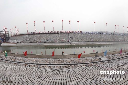 9月28日,南水北调中线京石段应急供水工程(以下简称京石段工程)建成通水仪式在河北省和北京市交界的北拒马河暗渠工程现场举行。河北省岗南、黄壁庄两水库的水,经南水北调中线京石段工程抵达北京,这标志着南水北调工程建设取得阶段性成果,中线京石段工程开始运行并发挥效益。中新社发 杜洋 摄