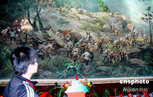 亚洲最大的油画亮相江西井冈山。该油画名为《黄洋界保卫战》,长十二米,宽八米,由鲁迅美术学院的四名教授历时二个月精心创作而成。作品反映了一九二八年八月,红军凭险据守井冈山黄洋界哨口粉碎进行第二次“会剿”的国民党军的历史,描绘了一百多个人物,色彩鲜艳,立体感极强。 中新社发 段长征 摄