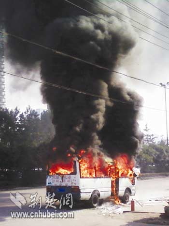 10月13日上午,停靠在武昌徐东粮油批发市场旁的一辆白色面包车突然自燃,所幸没有人员伤亡。当时车上只有司机一人,司机发现车辆前部冒烟,检查发现车头失火,立即下车报警,消防官兵赶到后将火扑灭。目前,失火具体原因仍在调查中。