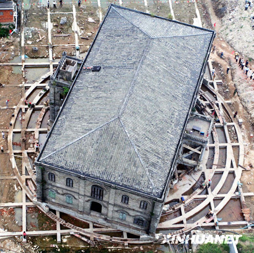 近日,福州泛船浦教堂神父楼的整体旋转工程进入尾声,90度“转身”即将完成。神父楼完成旋转后,还将向南移动,为城市道路建设“让路”。
