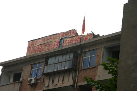 图:河南洛阳最牛钉子户插国旗护家