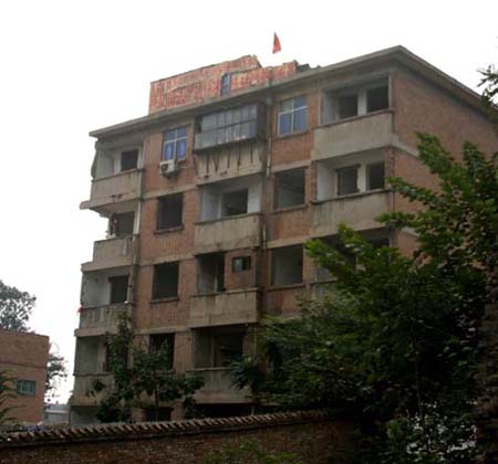 河南洛阳“最牛”钉子户在国庆节前一天,家中被砸。为此该户人家做出了一个惊人的举动,在被强拆的楼顶插上了一面鲜艳的国旗,以此来捍卫自己的家园。
