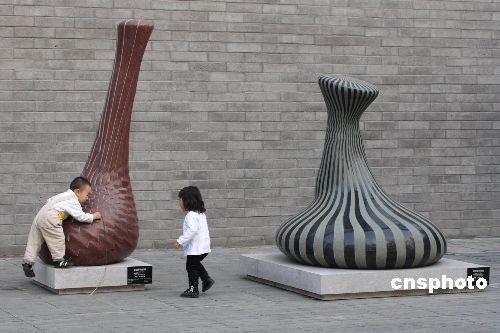 10月14日,不少游客在今日美术馆欣赏数码石雕。近日,以“科技与艺术的完美交融”为主题的数码石雕全国巡展在北京今日美术馆拉开帷幕。这些作品首先由美国艺术家使用三维数字设计解决方案,在电脑虚拟的环境中进行设计、分析、模拟和建模。而后,中国的雕刻师们参照三维快速成形打印设备制作的物理模型,以手工雕刻完成。中新社发 吴芒子 摄