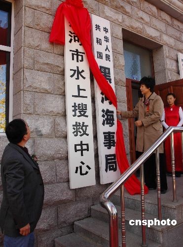 10月14日,中俄界河黑龙江黑河市水上搜救中心举行揭牌仪式。黑河市水上搜救中心的职责是负责统一组织、协调和指挥全市水上突发事件的应急处置工作。黑河市水上搜救中心管辖中俄界河水域365公里和嫩江省界水域390公里,每年通过这段界河及内河船舶流量2万多艘次,黑河口岸年船舶运输旅客100多万人次。目前水上搜救中心有海事及社会搜救船只近百艘,具有通航干线主要航段应急到达时间不超过1小时。主要港口一次溢油控制清除达到30吨的能力。目前,黑河海事局与俄罗斯布拉戈维申斯克海事部门就两国界河水上搜救工作建立起合作机制。中新社发 邱齐龙 摄