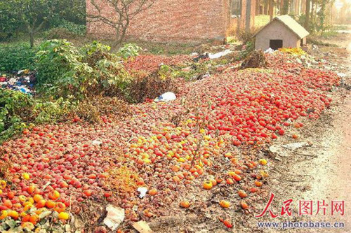 眼下正是收获柿子的时候,然而面对一片片长势喜人的成熟柿子,农民们却愁眉苦脸,在江苏东台市新街镇就出现这样的景象,这里万余亩新鲜的柿子在金秋时节遭遇到了“价格寒流”,数千万斤的柿子面临着“烂市”的尴尬局面。作者:李根