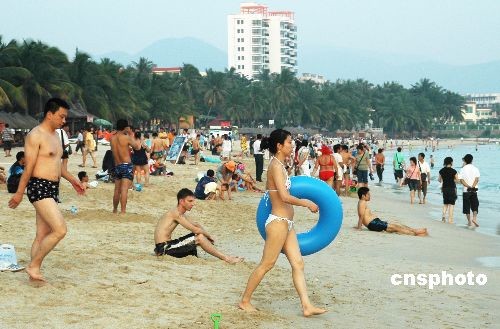 10月17日,海南三亚,中外国游客在三亚大东海景区沙滩上享受阳光。当日,进入十月中旬后连遭暴雨袭击阴雨不断的海南三亚天空放晴,中外游客和本地市民纷纷涌向沙滩,享受“久违了”的阳光、沙滩、海水。中新社发 尹海明 摄