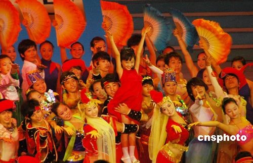 10月21日晚,在北京奥运会开幕式上演唱《歌唱祖国》给人留下深刻印象的著名童星林妙可,参加“三亚城市精神评选暨奥运冠军三亚行活动 ”晚会,再度演绎《歌唱祖国》,赢得满堂喝彩。中新社发 尹海明 摄