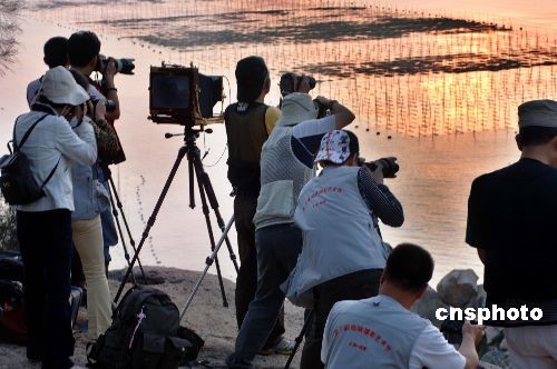 十月二十一日下午,来自海内外的摄影家,在福建霞浦县滩涂岸边捕光捉影。霞浦县----这处被誉为“拍不完好照片的地方”, 是摄影家和摄影爱好者创作休闲青睐地。中新社发 郑祚声