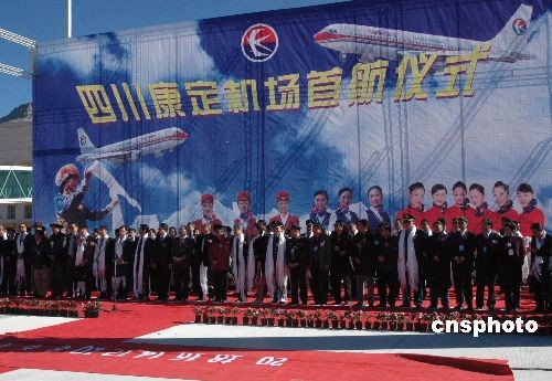 10月22日,世界海拔第二高机场——康定机场成功首航,康定架起了一座连接世界的金桥。康定机场位于四川省甘孜藏族州州府康定县西北40公里处,海拔4280米折多山山梁上,可遥望神奇险峻的贡嘎山和亚拉神山。中新社发 肖龙联 摄