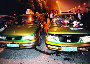 图:出租车司机将套牌车玻璃砸毁