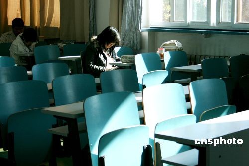 2008年10月31日,中国政法大学10.28案件的案发教室开放,上午九点左右,有少许学生进教室,但此教室尚未用于上课。背景:10月28日晚18点43分,中国政法大学昌平校区教室内,教授程春明正在准备上课时,男学生付某突然从后门冲入教室,用利器砍向程春明颈部,致其重伤,送医院抢救无效,当晚7点死亡。付某行凶后报了警,被警察带走。中新社发 rain 摄