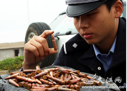 10月31日上午,南昌市红角洲派出所民警在生米大桥附近的赣江边,打捞出300余发子弹。经枪械专家现场鉴定,这些子弹品相很新,应该是近期抛进去的。至记者发稿时,南昌市红谷滩公安分局刑侦部门已经介入调查。文/图记者许南平实习生陈飞