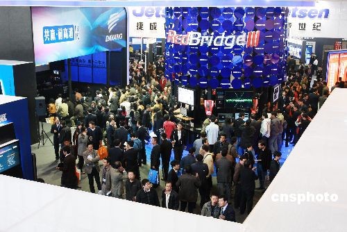 11月5日,第十七届北京国际广播电影电视设备展在北京中国国际展览中心开幕。本届展会以“收获奥运,助推高清,全面应用”为主题,在展示最新产品、最新技术的同时,将以展示和介绍一些成功用于奥运转播的优秀产品、技术和解决方案;针对奥运会对高清、有线电视数字化、移动多媒体广播等所产生的巨大拉动作用展开重点交流和研讨;加强BIRTV的会议功能三个方面的内容作为亮点。中新社发 郑雄增 摄