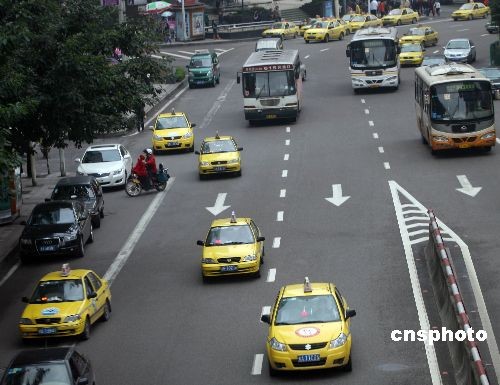 十一月五日,在重庆市菜园坝火车站附近的的士候车站,停靠着不少出租车等待市民乘坐。三日清晨,重庆主城部分出租车因受阻不能正常营运,给当地群众出行造成不小困难。当地政府于三日做出紧急部署,采取多项有力措施,积极解决出租车停运事件。目前,重庆主城区八千余辆出租车已全面恢复营运。