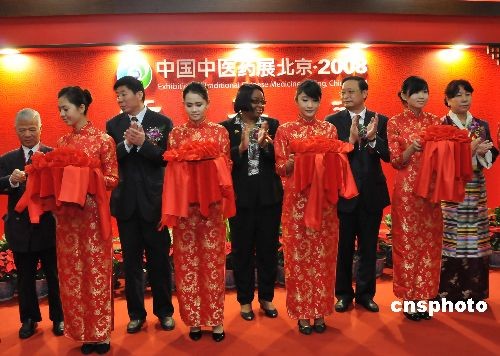 国家中医药管理局局长王国强(右三) 以及世界卫生组织助理总干事凯瑞萨女士(右五)今天在北京中国国际贸易中心为“中国中医药展”剪彩。经中国国务院批准,卫生部、国家中医药管理局、国家食品药品监督管理局、教育部、科技部和解放军总后勤部卫生部联合主办此次大型中医药展今天开幕。展览分为中医药历史文化、中药产业、中医药体验区等五大展区,会聚了内地三十一个省、区、市,香港、澳门特区,世界卫生组织,部分中医药产、学、研机构等一百多家单位参展。中新社发 曾利明 摄
