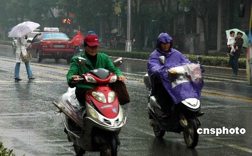 11月6日,安徽巢湖市迎来了一场秋雨。此次降水量虽不大,但因持续时间较长,路面湿滑,市民打伞骑车,除给市民出行带来不便,还可能造成交通隐患。中新社发 徐振华 摄