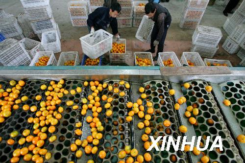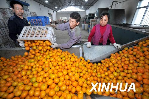 进入11月以来,全国四大柑橘带之一的湖北省宜昌市柑橘销售逐渐回暖,11月5日,宜昌市日销售柑橘1.4万吨,接近日常销售平均水平。据介绍,近年来宜昌市采取多种措施加大无公害柑橘基地建设力度,着力打造宜昌优质柑橘品牌。2008年宜昌市142万亩优质柑橘产量达到148万吨。新华社记者 郝同前 摄