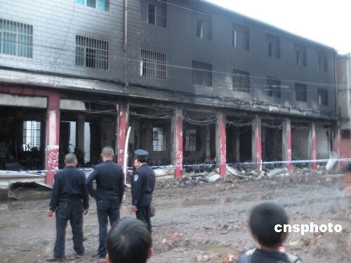 11月6日下午16时57分在昆明市前卫镇官庄上村和下村之间的一个存放电动自行车的三层仓库发生火灾,所幸没有人员伤亡。图为民警正在对仓库的负责人进行询问。中新社发 蒋晨 摄