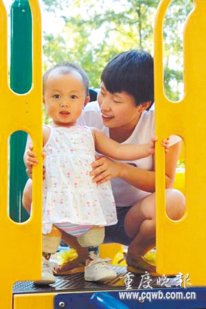 虽然还没有见到“乖乖”,但重庆的爱心妈妈们却传阅着从美国发来的照片:“乖乖可以走路了,穿上裤子,就和正常小孩一样!”