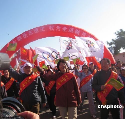 图:奥运冠军王军霞领跑新乡“迎奥运万人健步行”