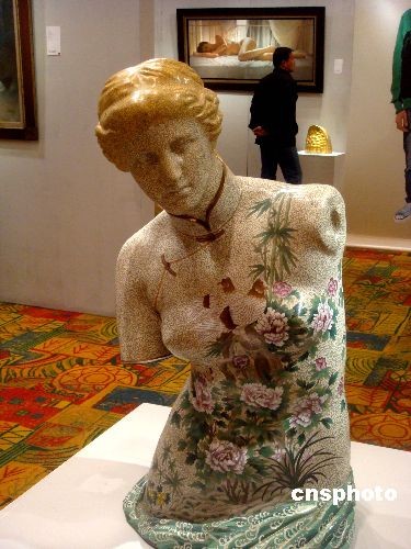 一尊用珐琅彩工艺创造的西方著名雕塑维纳斯半身像。