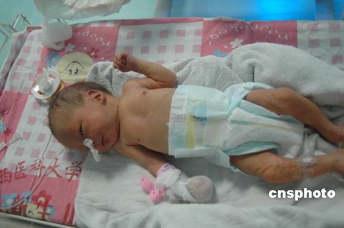 11月8日,广西医科大学一附院新生儿区里,一名由植物人孕妇产下的男婴在手舞足蹈。男婴的母亲名叫唐瑜陆,已瘫痪半年之久,在丈夫的悉心照料下,唐瑜陆于11月5日顺利生产。中新社发 王刚 摄