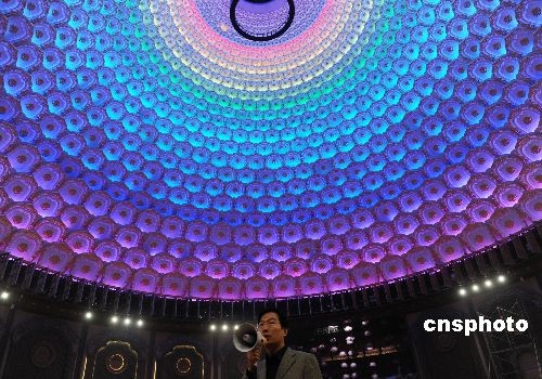 11月13日,在江苏无锡灵山胜景三期工程灵山梵宫内,一位参观人员用手机拍摄梵宫内的“壮观景象”。据悉,无锡重大旅游建设项目—灵山胜境三期工程将于近日竣工,正式向游人开放。 中新社发 张立伟 摄