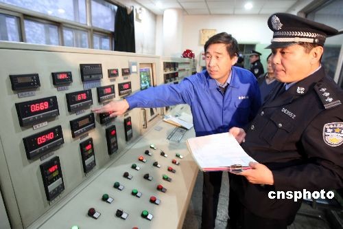 北京地区11月15日实施全面供热。连日来,北京石景山警方对辖区内的集中供热系统进行全面检查,为安全、及时地给市民提供冬季取暖打下坚实的基础。中新社发 任海霞 摄