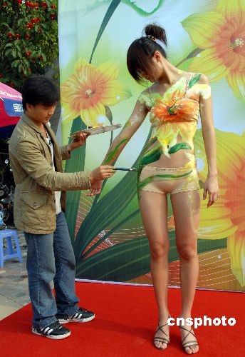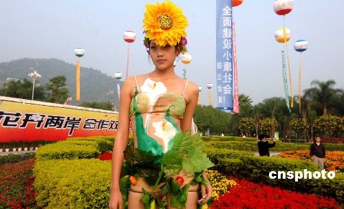 十一月十八日,女模特在福建漳州花博园里表演彩绘秀,吸引观众眼球。当日,第十届海峡两岸(福建漳州)花卉博览会、2008年台湾农产品博览会在福建漳州花博园隆重开幕。