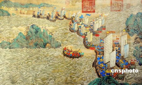 清宫“钦定平定台湾凯旋图”现身北京,该画作描绘康熙时期施琅大将军率军平定台湾,出自清宫廷画家之手。