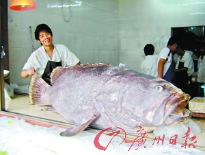 图:东莞身长2.12米"石斑鱼王"下油锅