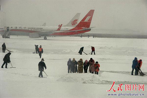2008年11月20日,吉林长春再次降雪,因天气寒冷,长春龙嘉机场跑道结冰飞机停航。