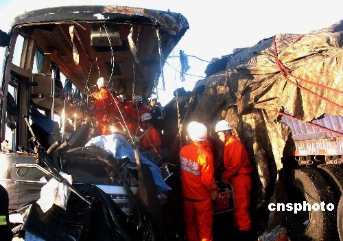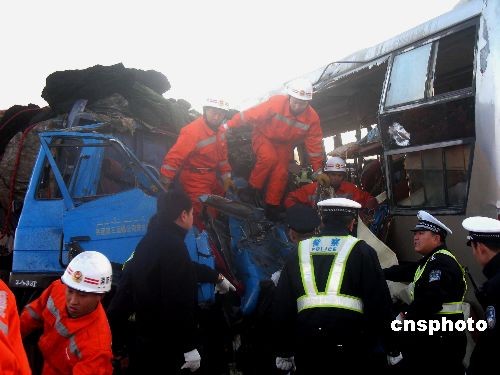 12月2日上午8点40分许,国道314线新疆库车境内762公里处,一辆拉煤货车与一辆从阿图什开往乌鲁木齐的大客车迎头相撞,目前已导致21人死亡,12人受伤。事故发生后,新疆阿克苏地区立刻启动应急预案,交通部门负责人都已赶赴现场参与指挥救援。库车县已成立救治小组,有关事故原因正在进一步调查中。中新社发 汪渝 摄