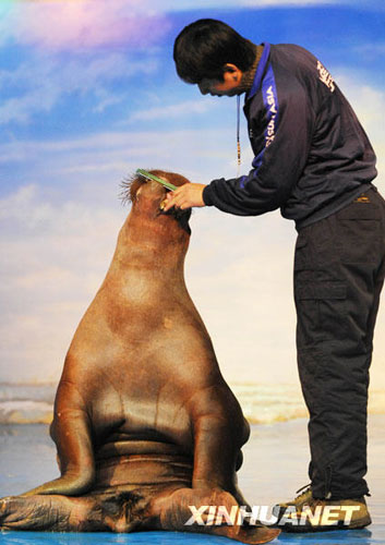 俄罗斯极地海象“抢占”哈尔滨圣诞舞台
