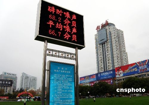 2008年12月4日,湖北省宜昌市城区夷陵广场上的环境噪声自动监测系统显示着噪声数据。宜昌市环保局已在城区安装3处环境噪声自动监测系统,实现对城市主要交通干道、居民居住区和社会活动集中地点的环境噪声全天候24小时不间断自动监测。中新社发 刘君凤 摄