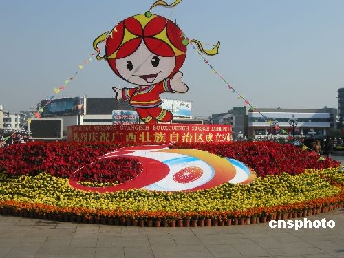 图:桂林街头花团锦簇喜迎广西五十周年大庆