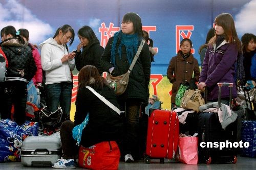 12月9日,北京火车站出现返乡客流。据中国铁道部新闻发言人王勇平透露,2009年全国铁路春运自1月11日起至2月19日止,为期40天,其中春节前15天,节后25天。预计2009年春运全路将发送旅客1.88亿人次,同比增加1373万人次,增长8%,铁路运输能力仍然紧张。根据铁道部预测,2009年春节时间较早,这次春运,节前学生流、务工返乡流和探亲流将出现严重叠加,客流高峰“来得早、上得猛”。中新社发 郑雄增 摄