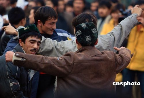 12月9日是伊斯兰教传统节日——古尔邦节,新疆乌鲁木齐少数民族商业氛围集中的二道桥国际大巴扎节日气氛浓郁,众多穆斯林民众相聚在一起载歌载舞欢度一年一度的重要节日。“古尔邦”是阿拉伯语的音译,有“牺牲”“献身”的意思,所以“古尔邦节”又名“宰牲节”。中新社发 刘新 摄
