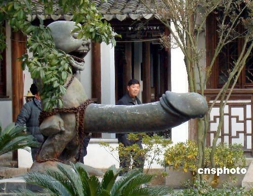 近日,参观者在苏州古镇同里“中华性文化博物馆”内观看雕塑“绑不住的地方”。 据悉,这座面积约7000平方米的性文化博物馆是4年前从上海搬迁到同里的,展出古代性文化实物、雕塑、图画、书籍等展品2000件左右。中新社发 王建康 摄