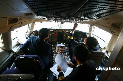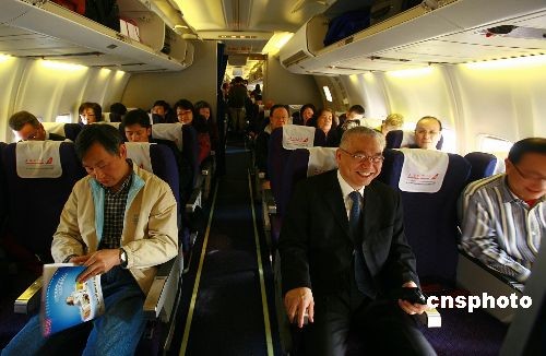上海航空公司执飞的两岸常态化包机上航首个航班,12月15日准点从浦东国际机场起飞,并于当天上午安全降落在台北松山机场。上航首个常态化直航包机航班,采用双机长制,确保飞行安全、平稳和乘坐舒适。中新社发 夏本建 摄