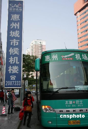 十二月十五日,是海峡两岸实现“大三通”的首日,深圳机场惠州候机楼格外忙碌,他们热情地为台商办理登机和货物托运手续。据了解,每个星期一、四、六有三个航班从深圳至台北的直航班飞机,深圳机场惠州候机楼的“直通车”从惠州出发至深圳机场的路程仅有一个小时的时间,两岸实现直航后,深圳机场惠州候机楼为在惠州投资的二千多家台商企业和近万名台商到深圳机场乘机往返台湾提供了便利。中新社发 宋秀杰 摄