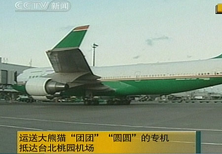12月23日下午5时许,运送大熊猫“团团”“圆圆”的专机抵达台北桃园机场。