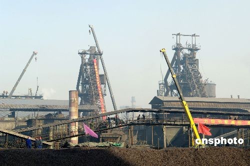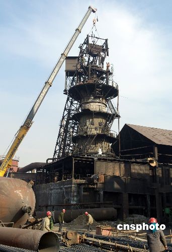 2008年12月23日,河北省邢台市拆除内丘县龙海钢铁集团及未来冶炼公司两座220立方米高炉设施。为贯彻落实国家节能减排方针政策,淘汰落后产能,转变经济发展方式,改善大气环境质量,环保等部门对龙海钢铁集团及未来冶炼公司的2座220立方米高炉进行人工拆除。此次拆除,龙海钢铁集团高炉与未来冶炼公司高炉将分别削减二氧化硫1703吨和1700吨,为改善环境质量,促进经济可持续发展,起到积极的作用。中新社发 克家 摄