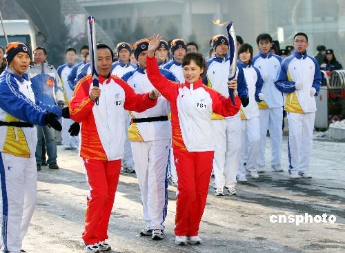 图:哈尔滨大冬会牡丹江站火炬传递结束