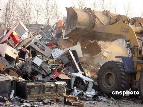 十二月二十六日,北京警方对收缴的非法赌博机进行销毁。中新社发 任海霞 摄