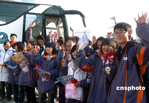 1月14日,在浙江杭州就读的25名四川灾区学生与同学道别,准备回家乡过年。汶川地震发生之后,来自四川地震灾区的数百名学生来到了浙江就读。春节即将到来,他们当中的大部分人踏上返乡路,回家和家人团聚。中新社发 施健学 摄