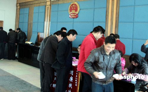 1月22日,江西吉水人民法院召开清理执行积案兑现大会,发放执行款共计850万元,200名当事人当场领到了拖欠多年的劳动报酬。入冬以来,吉水法院以清理执行积案为契机,重点清理执行拖欠群众工资案,执结60件“骨头案”和“棘手案”。中新社发 肖春根 摄