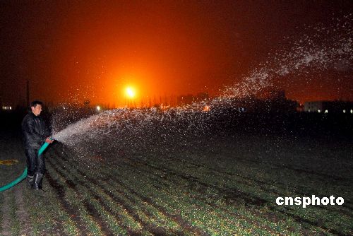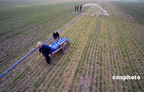 2月3日18时许,在遭遇48年来最大干旱灾害的安徽淮北韩村镇肖家村,村民在浇灌麦地。近3个月以来,淮北地区出现严重的旱冻灾害,特别是淮北中西部地区旱情日益加重。全市农民根据自家实际,自发地最大限度整合人力、物力和财力,提水、运水浇灌,消除麦旱死角,最大限度减轻旱灾损失,以夺取2009年夏粮丰收。中新社发 陈帮干 摄