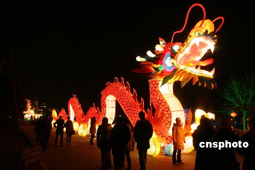 2月3日晚,正月十五元宵节将至,河南省开封市龙亭公园举办“龙亭·自贡”大型艺术灯会,浓浓的喜气吸引众多市民和游客游园赏灯。中新社发 凯枫 摄